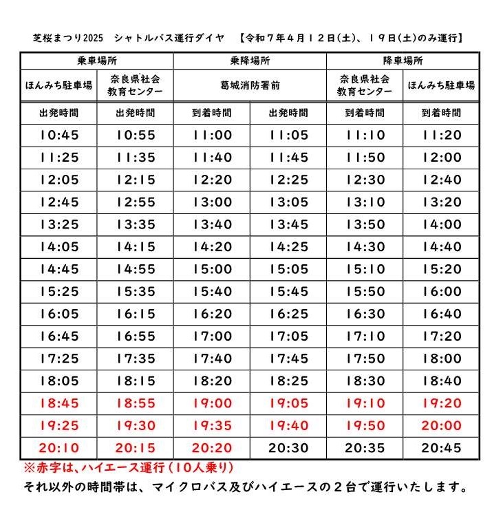 4月12日(土)、19日(土)はシャトルバスを運行しますので、ぜひご利用ください。
