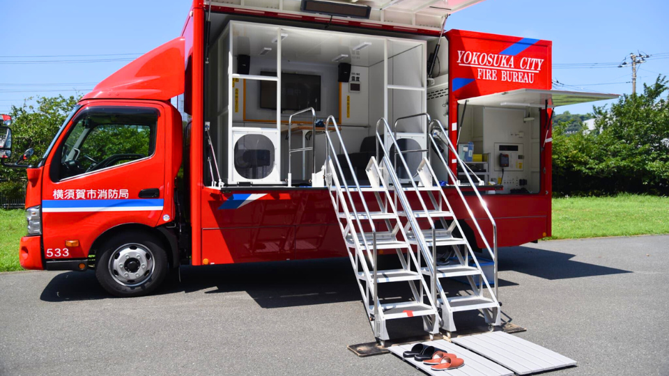 Yokosuka Stadium, outside the stadium’s earthquake experience vehicle.