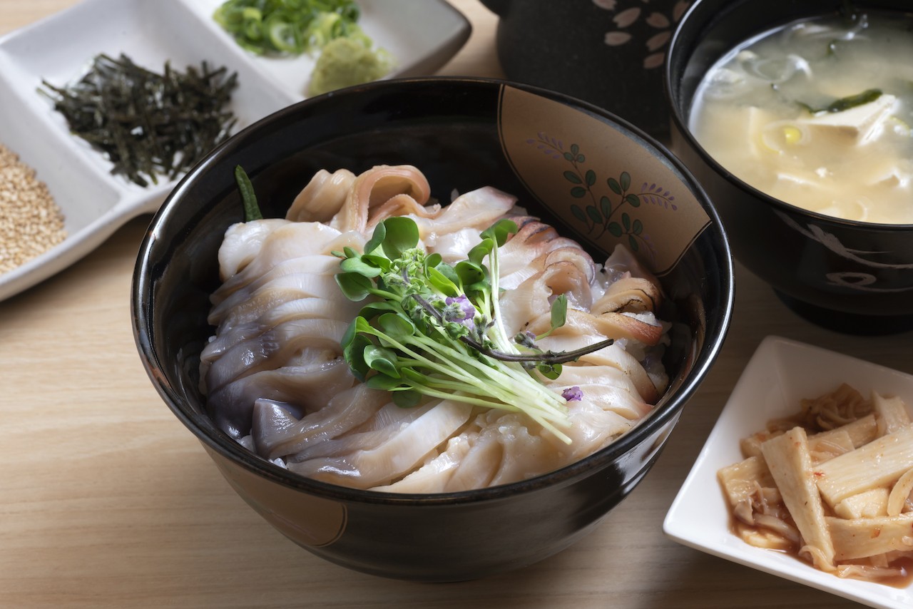 Mit fangfrischen Misawa-Hokki-Muscheln bietet "Misawa Hokki Don" eine Vielzahl von Geschmacksrichtungen, von einer Schale mit frischem Sashimi bis hin zu Paella nach westlicher Art und Reis mit Tempura.