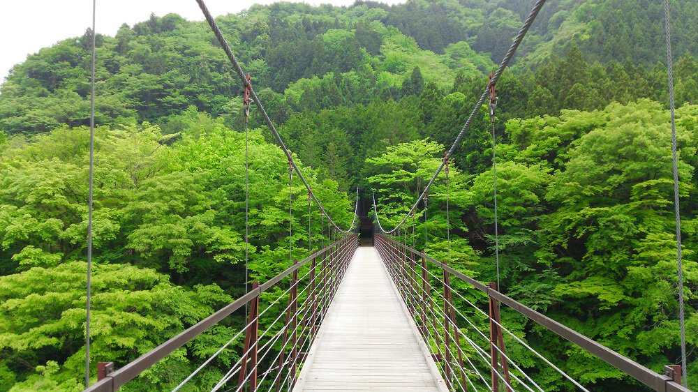 Nohara Suspension Bridge hangs at a height of 37 meters above a river.