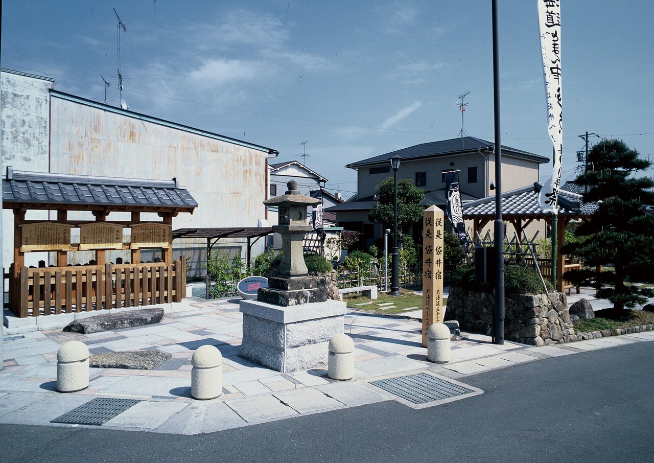 A kosatsu (a street bulletin board) and a dorui (a mound) convey the atmosphere of an old-time shukuba.