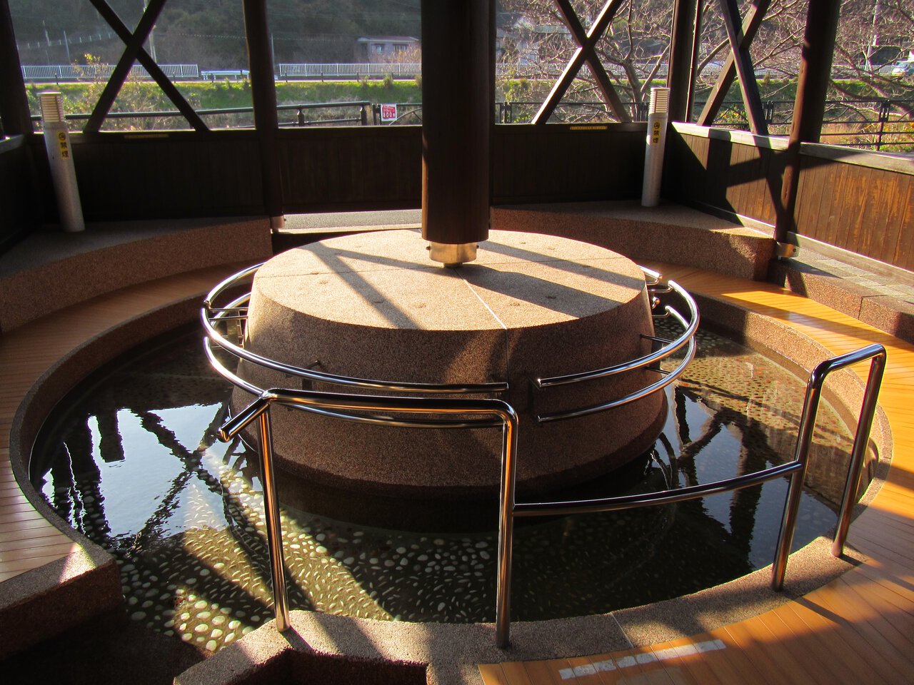 The “Sakura no Ashiyu Dokoro (footbathing)” is located in Sasahara Park, along Kawazu River (free of charge).