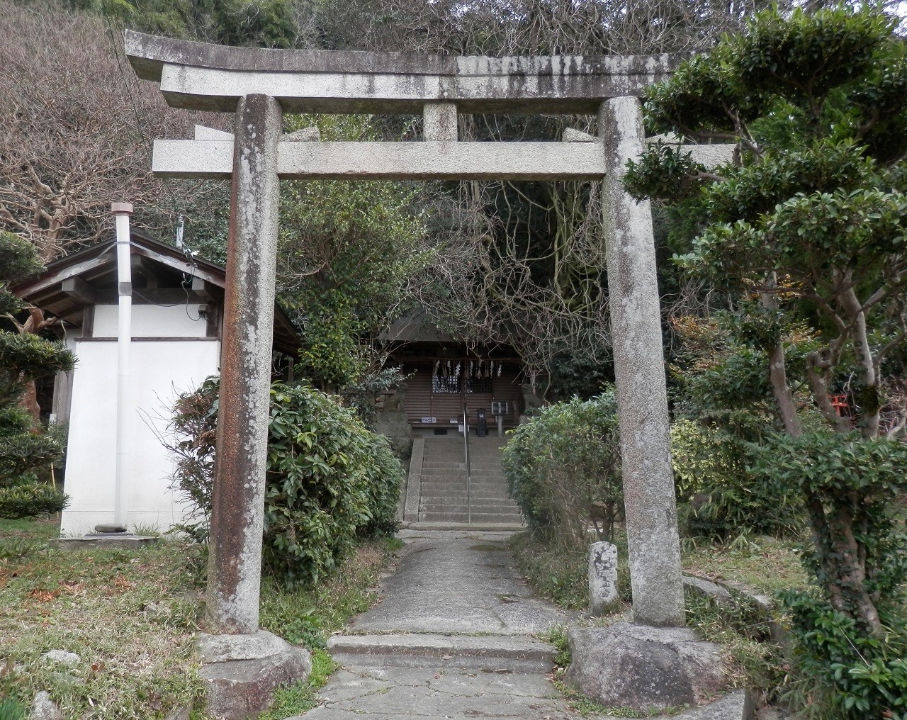 The Koshigami jinja shrine is dedicated to the deities Minoshima no Sukune, Hachidai Ryuoh, Sarutahiko-no-mikoto and Kunimitsu Daimyojin.