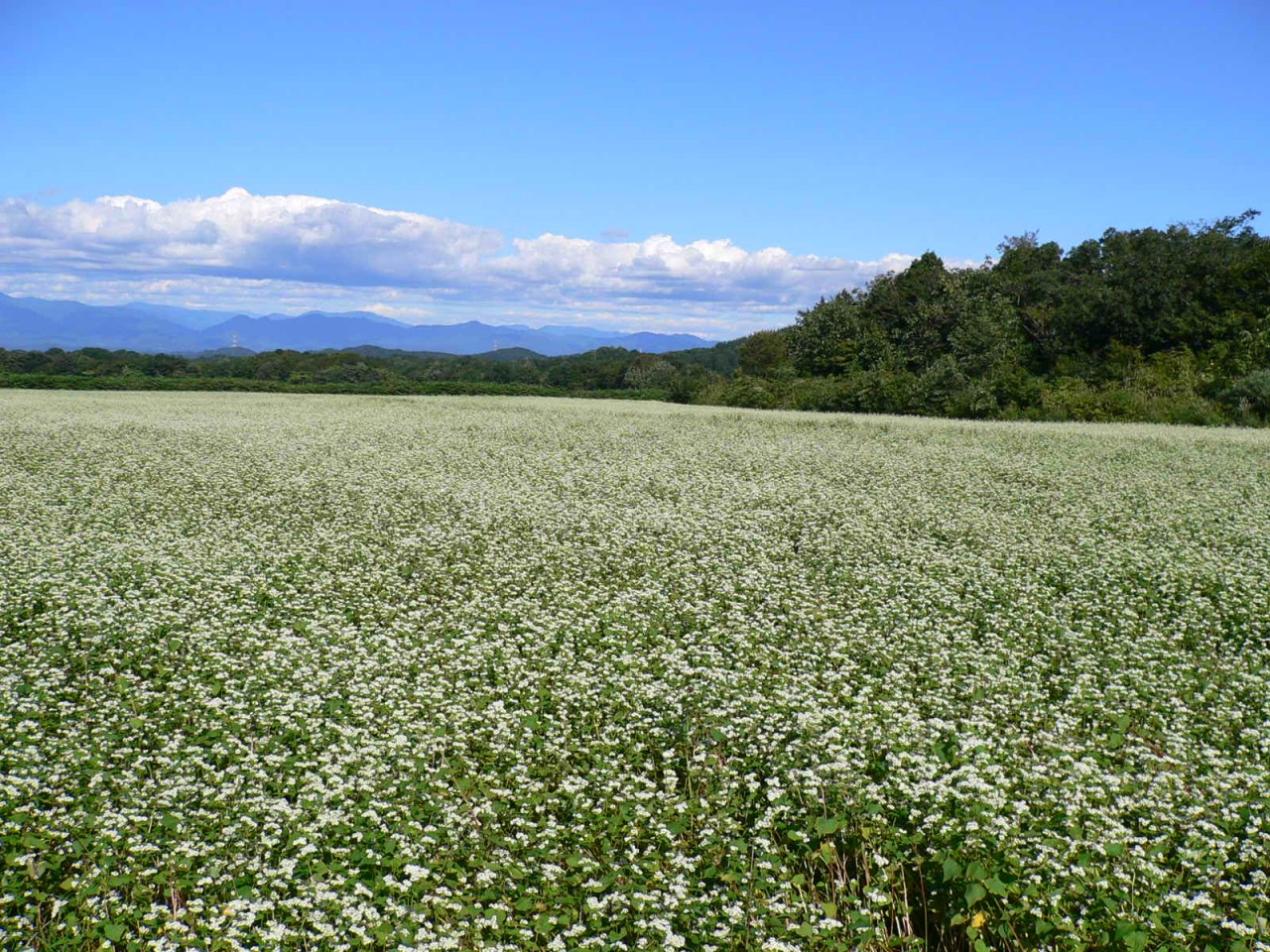 In early September, white buckwheat flowers bloom, making this extensive plateau look like it has been covered entirely by a white carpet.