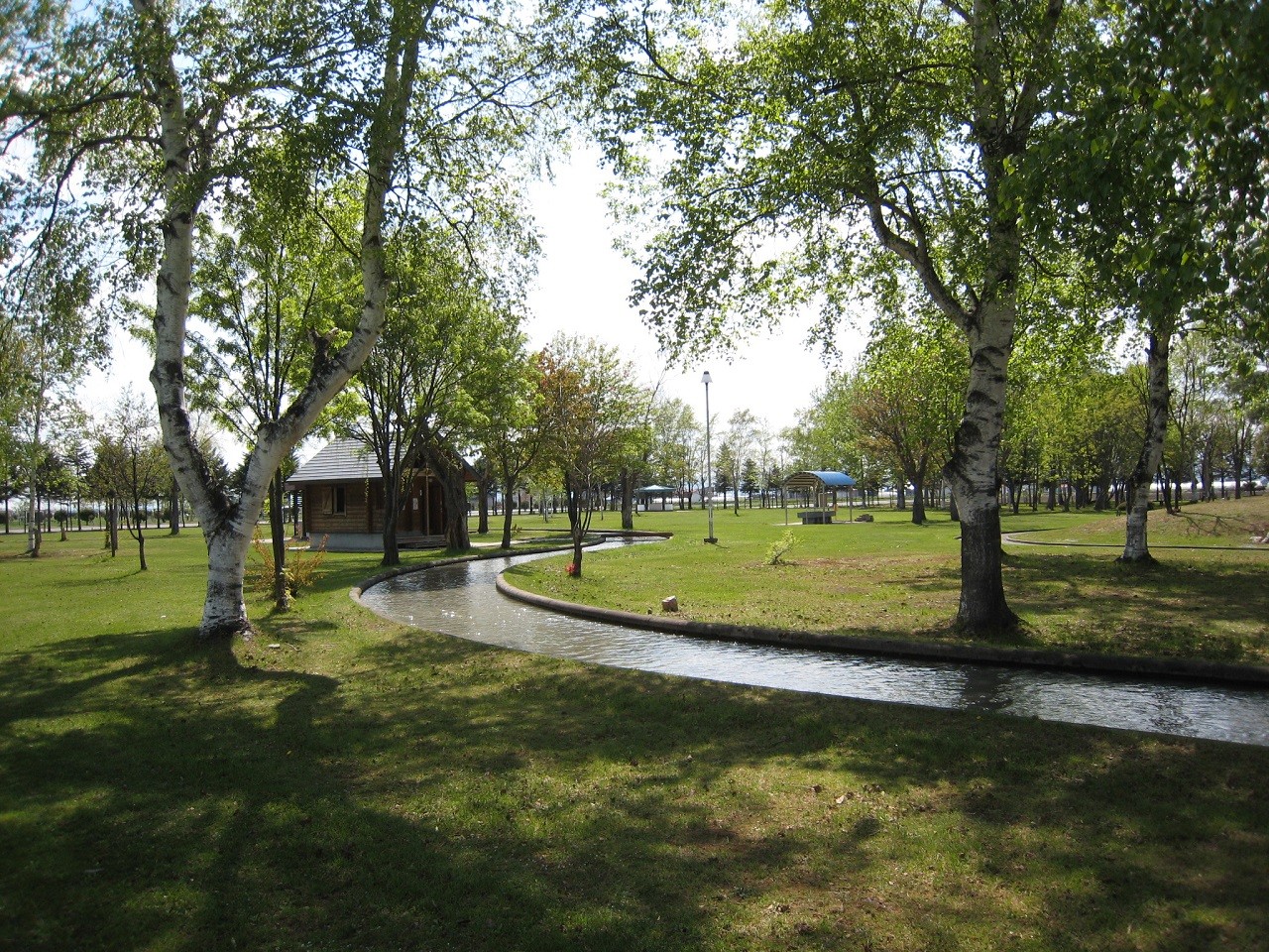 Bell-Park Chippubetsu Campsite spreads on a grassy lawn, next to Kids Square Chikkuru and Outdoor playground Cubic Connection.
