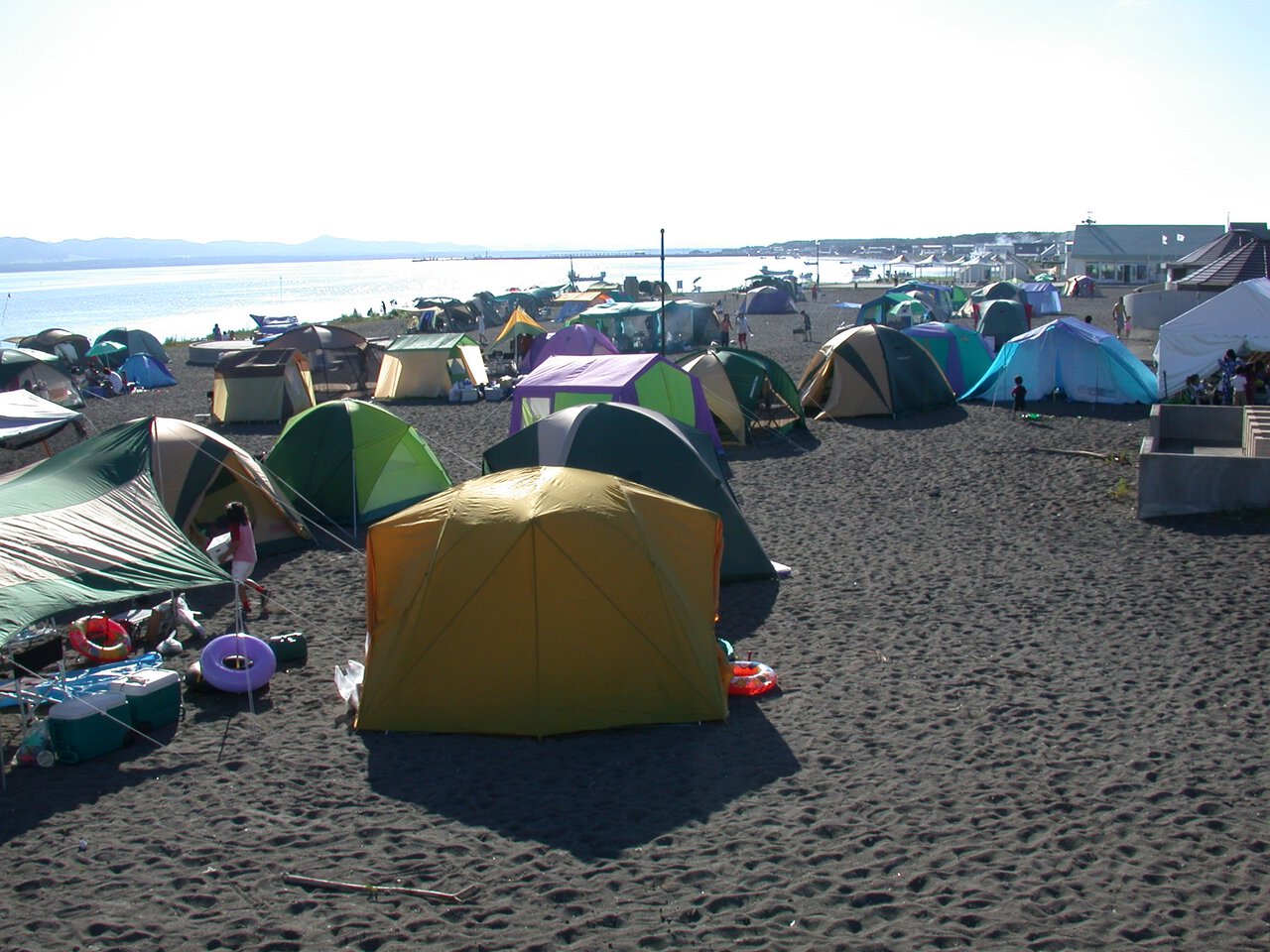 The Sanrihama Campground is a campsite surrounded by Lake Saroma and the Sea of Okhotsk with auto camping site and bungalows.