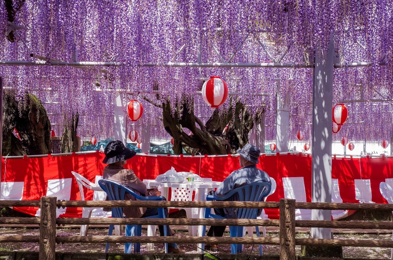 They are said to have been planted using seeds from Osaka’s Noda Wisteria by a local sake brewer in the Edo Period.
