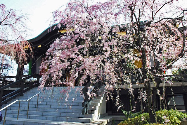 The weeping cherry trees, which bloom beautifully against the backdrop of the main hall and other buildings in the precinct, are amongst the most famous viewing spots in the ward.