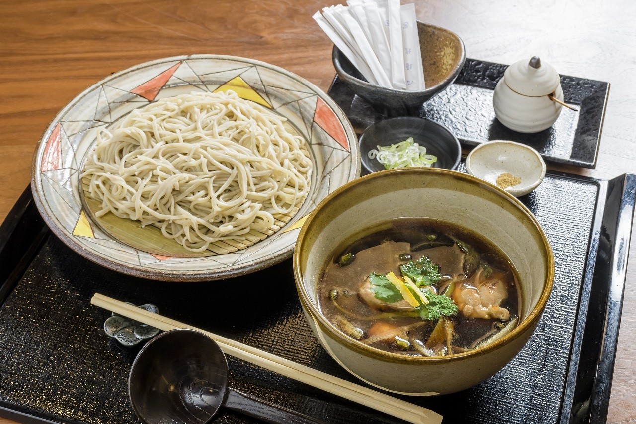 The handmade soba made from buckwheat flour from Horokanai and wheat from Hokkaido boast a rich flavor and go down very well.