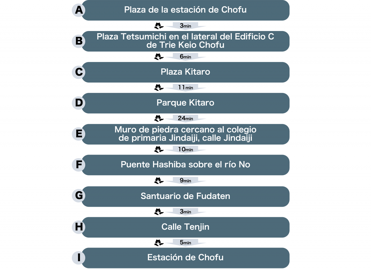 En la sexta serie de GeGeGe no Kitaro aparecen muchos puntos de Chofu y muchas escenas ambientadas en la ciudad.Esta ruta es un peregrinaje a los lugares sagrados de la serie que se puede recorrer comparando las escenas que aparecen en el anime con los lugares reales.