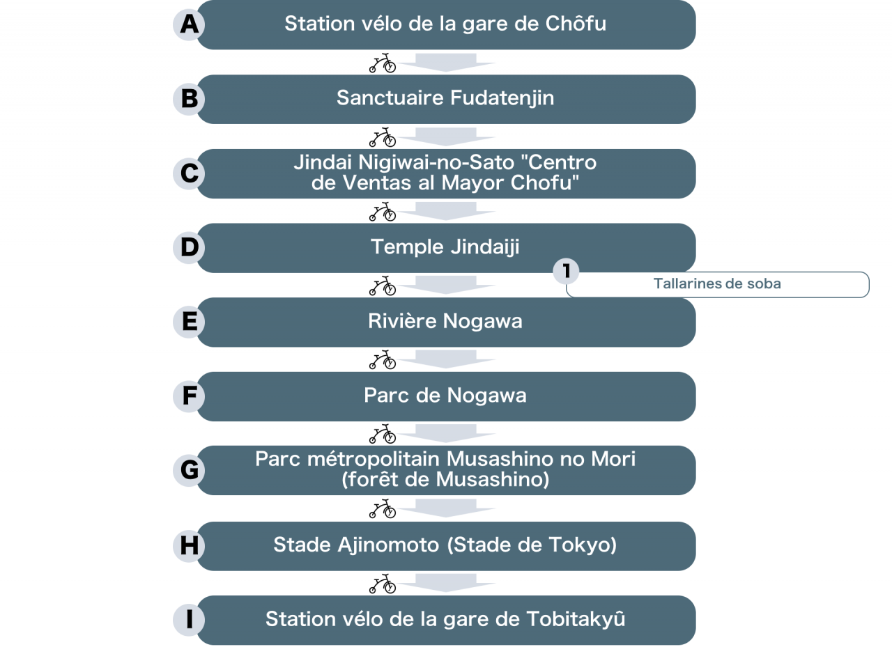 Que diriez-vous d’une promenade rafraichissante hors de la métropole ?À vélo, vous pourrez visiter Chofu de manière agréable, en profitant de la nature, sans vous soucier des distances.
