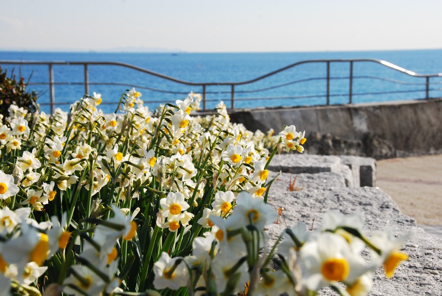 Une promenade est aménagée depuis la côte proche de la gare YRP Nobi jusqu’à la stèle du poème tanka sur le couple de Bokusui Wakayama.