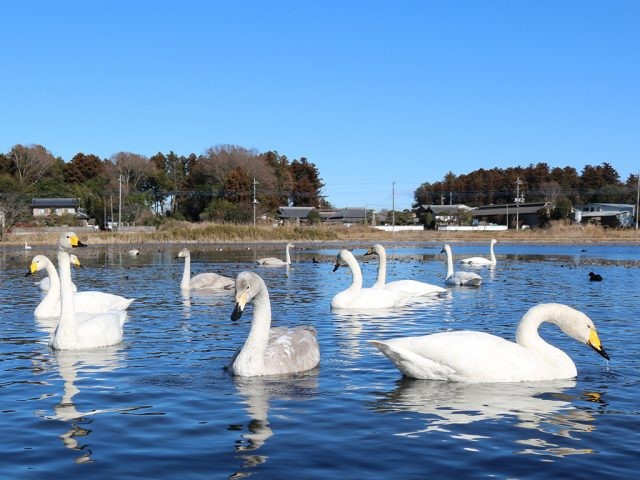 Pendant la saison hivernale, de nombreux cygnes s'envolent vers l'étang Ikehana pour y passer l'hiver.