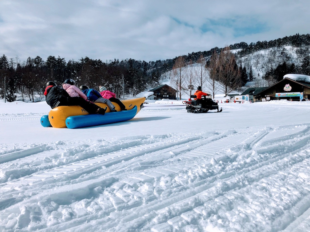 Le toboggan de neige géant, les manèges de motoneiges et les bateaux bananes, que l'on utilise habituellement dans l'océan, font partie des attractions les plus palpitantes du parc.