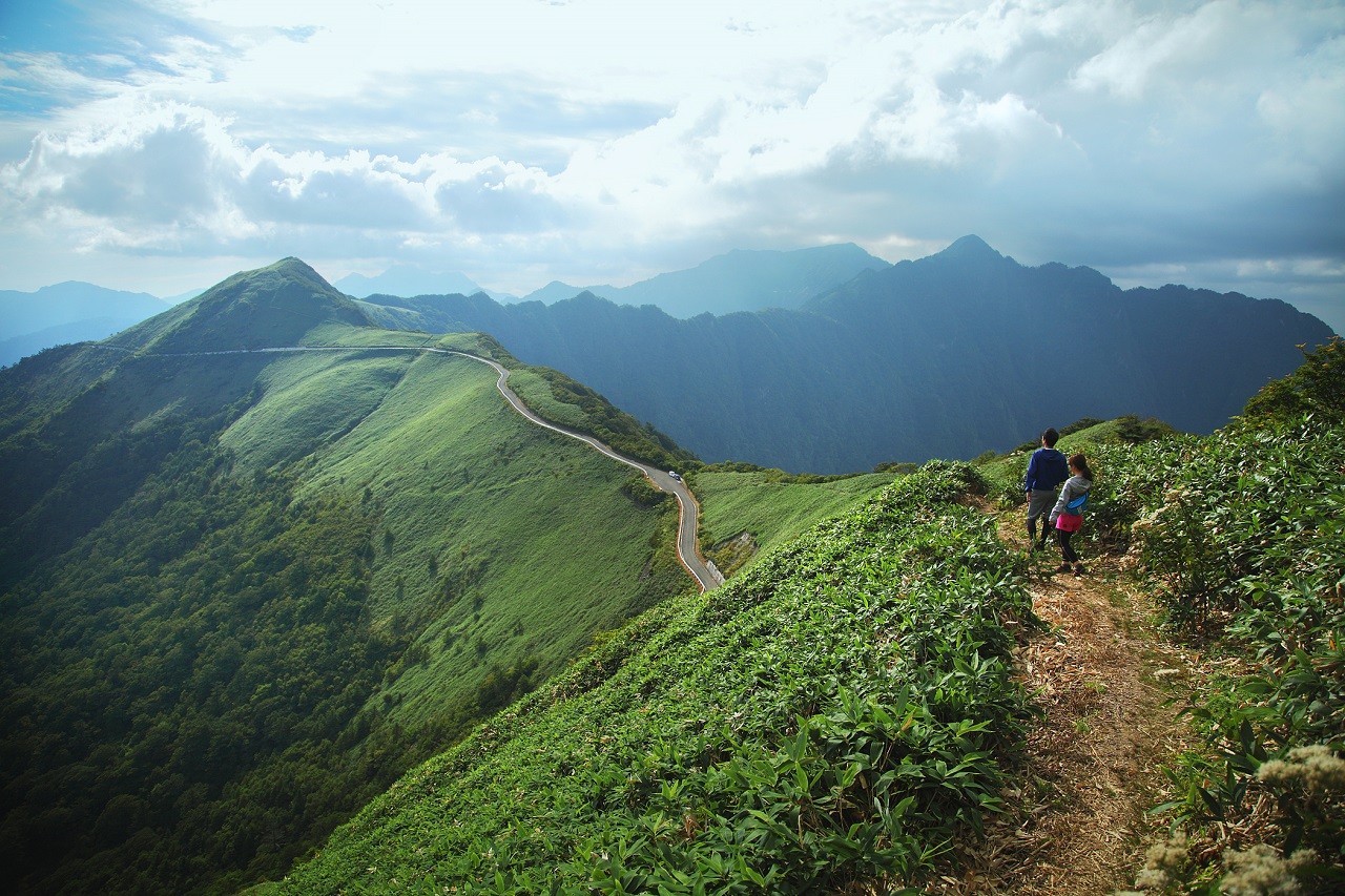 Rute berkendara yang luar biasa di sepanjang punggung bukit Kamegamori, melewati kaki langit Ishizuchi hingga ke gunung suci Ishizuchi.