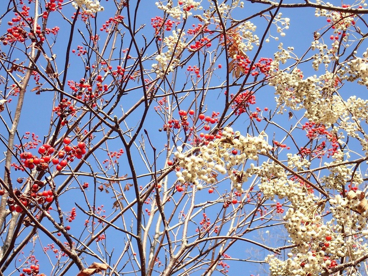 Umumnya, pohon rowan Jepang menghasilkan buah merah cerah dari musim gugur hingga musim dingin, tetapi pohon ini sangat tidak biasa karena menghasilkan buah putih murni.