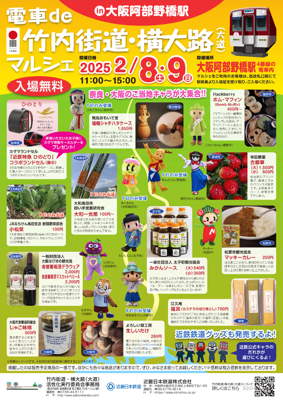 A unique market is coming to Kintetsu Osaka Abenobashi Station, held inside a train specially designated for the event! You’ll find specialty goods from ten different municipalities in Osaka and Nara.