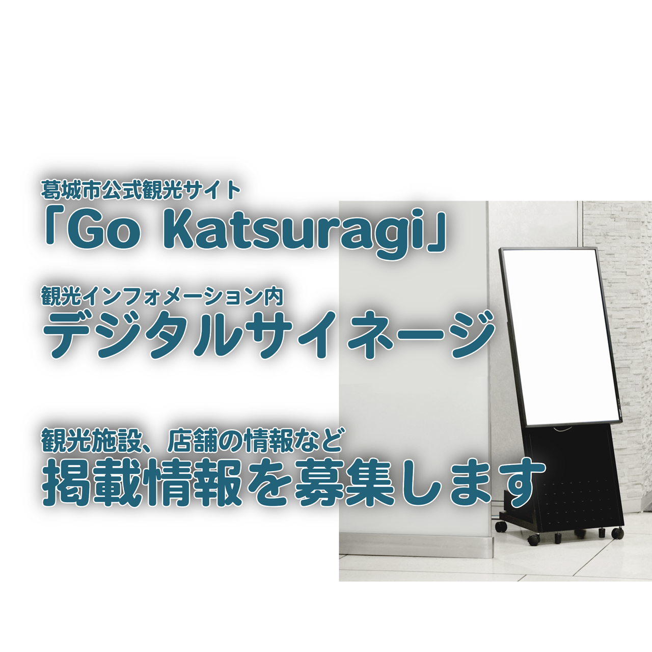 葛城市公式観光サイト「Go Katsuragi」および観光インフォメーション内のデジタルサイネージに掲載する観光施設、店舗の情報を募集しています
