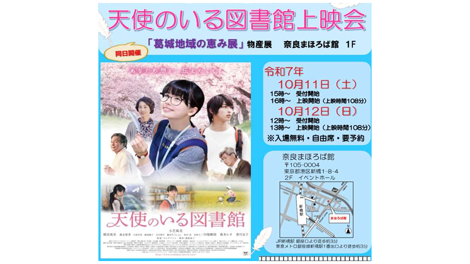 【東京】 映画「天使のいる図書館」無料上映会&物産展「葛城地域の恵み展」 が開催されます!
