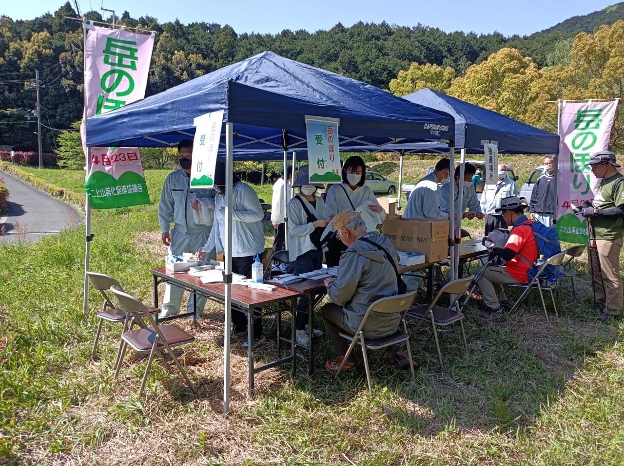 (1)最寄りの登山口受付所で「岳のぼり芳名録」に氏名等を記入し、抽選参加券とゴミ袋を受け取り、ゴミを拾いながら登山する。