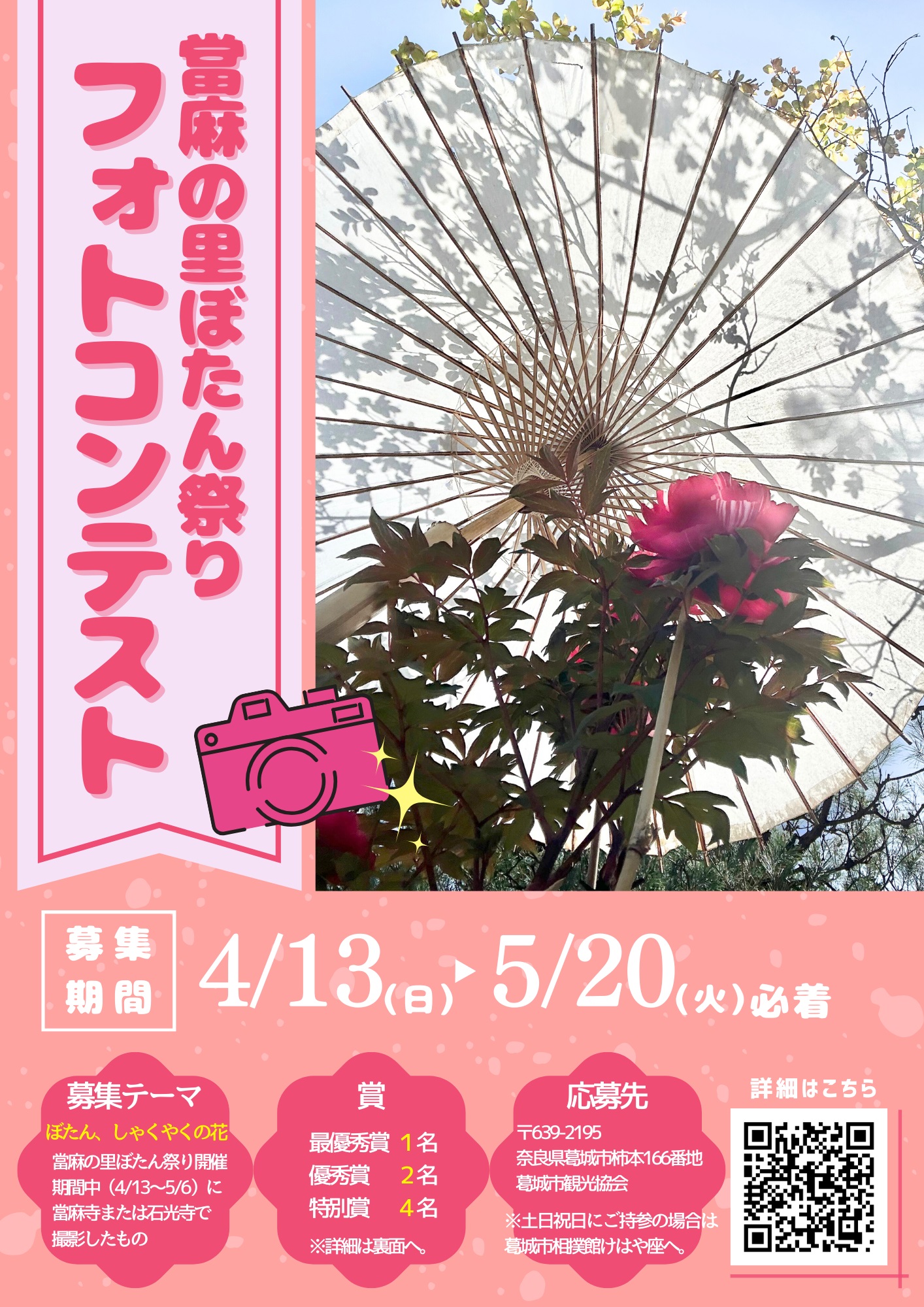 當麻の里ぼたん祭り開催期間中(R7.4.13~5.6)に當麻寺または石光寺で撮影したもので、