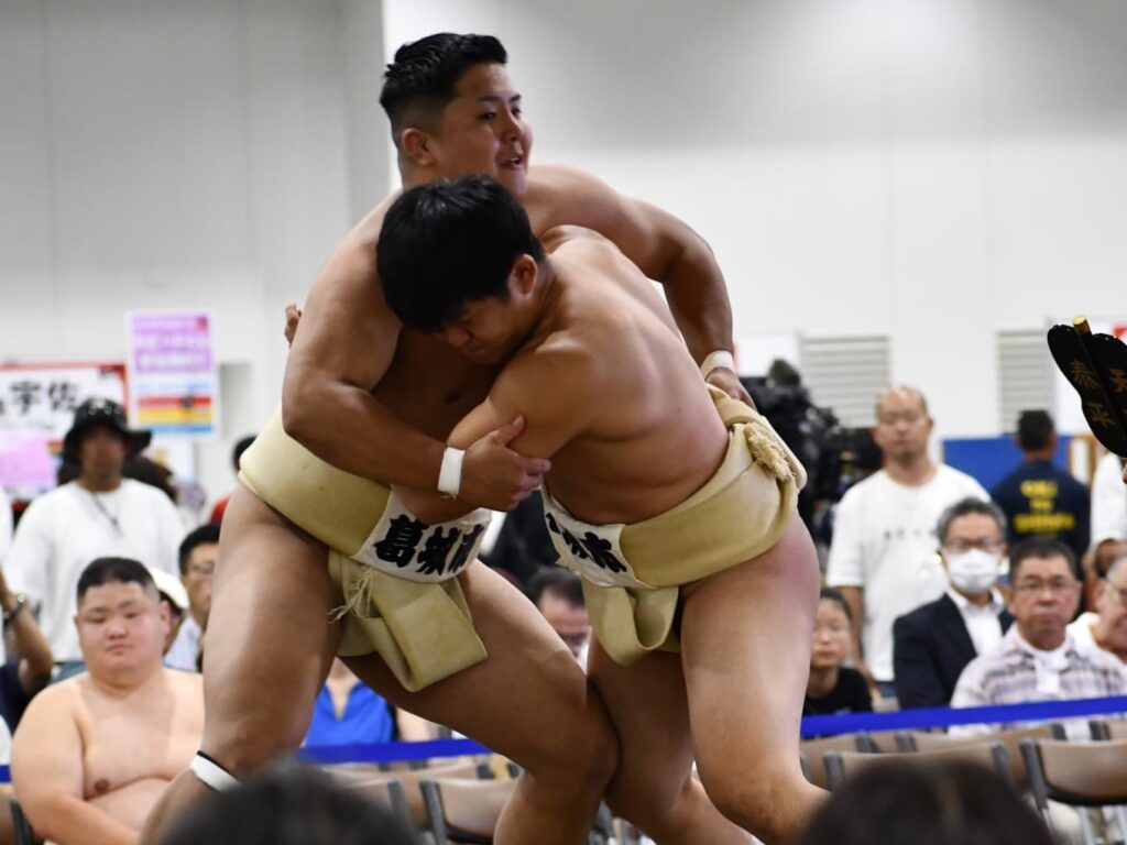 「小中学生相撲大会」が開催され、手に汗握る真剣勝負に会場は大いに盛り上がっていました。