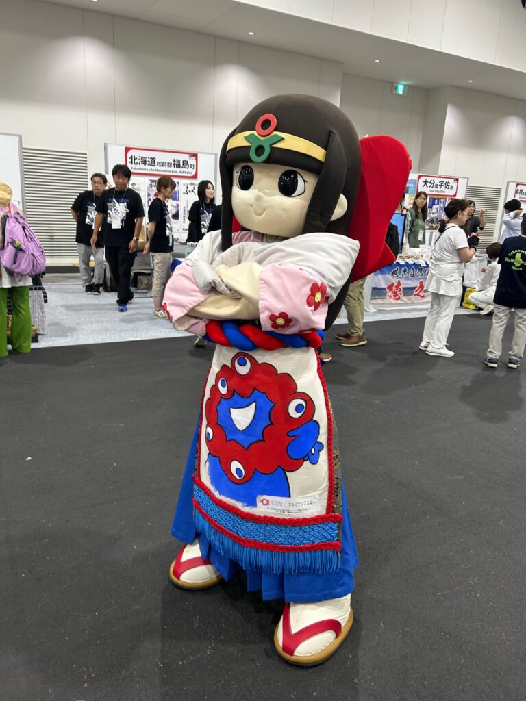 鹿児島県の瀬戸内町ブースではミャクミャクの化粧まわしをつけた記念撮影も!