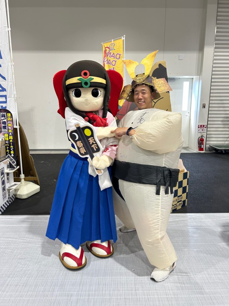株式会社高木包装(株式会社パックインタカギ)さんのブースもあり、蓮花ちゃんは奈良県桜井市のマスコットキャラクター、ひみこちゃんと「段DAN相撲」で熱戦を繰り広げました。