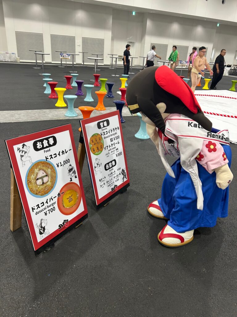 株式会社高木包装(株式会社パックインタカギ)さんのブースもあり、蓮花ちゃんは奈良県桜井市のマスコットキャラクター、ひみこちゃんと「段DAN相撲」で熱戦を繰り広げました。
