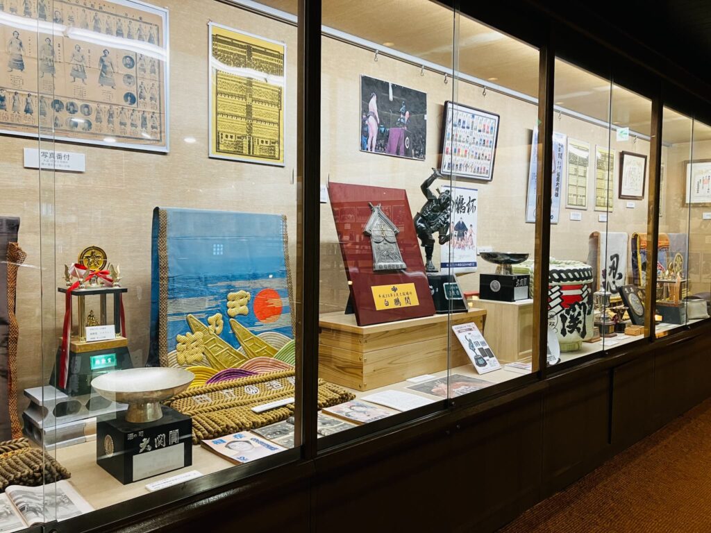 相撲館の2階では、相撲の歴史年表や郷土力士など、相撲に関する数多くの資料を展示しています。所蔵資料は、13,000点を越え、期間限定で特別展も実施しています。