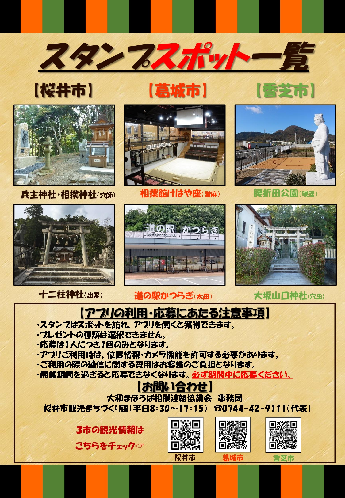 「相撲」発祥の地である葛城市、香芝市、桜井市、それぞれの相撲ゆかりの地や観光スポットを巡るスタンプラリーを開催中です。