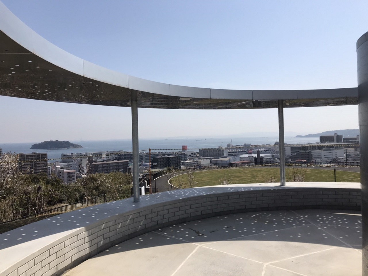 요코스카 거리와 도쿄만이 펼쳐진 경관과 평화를 기원하는 기념비