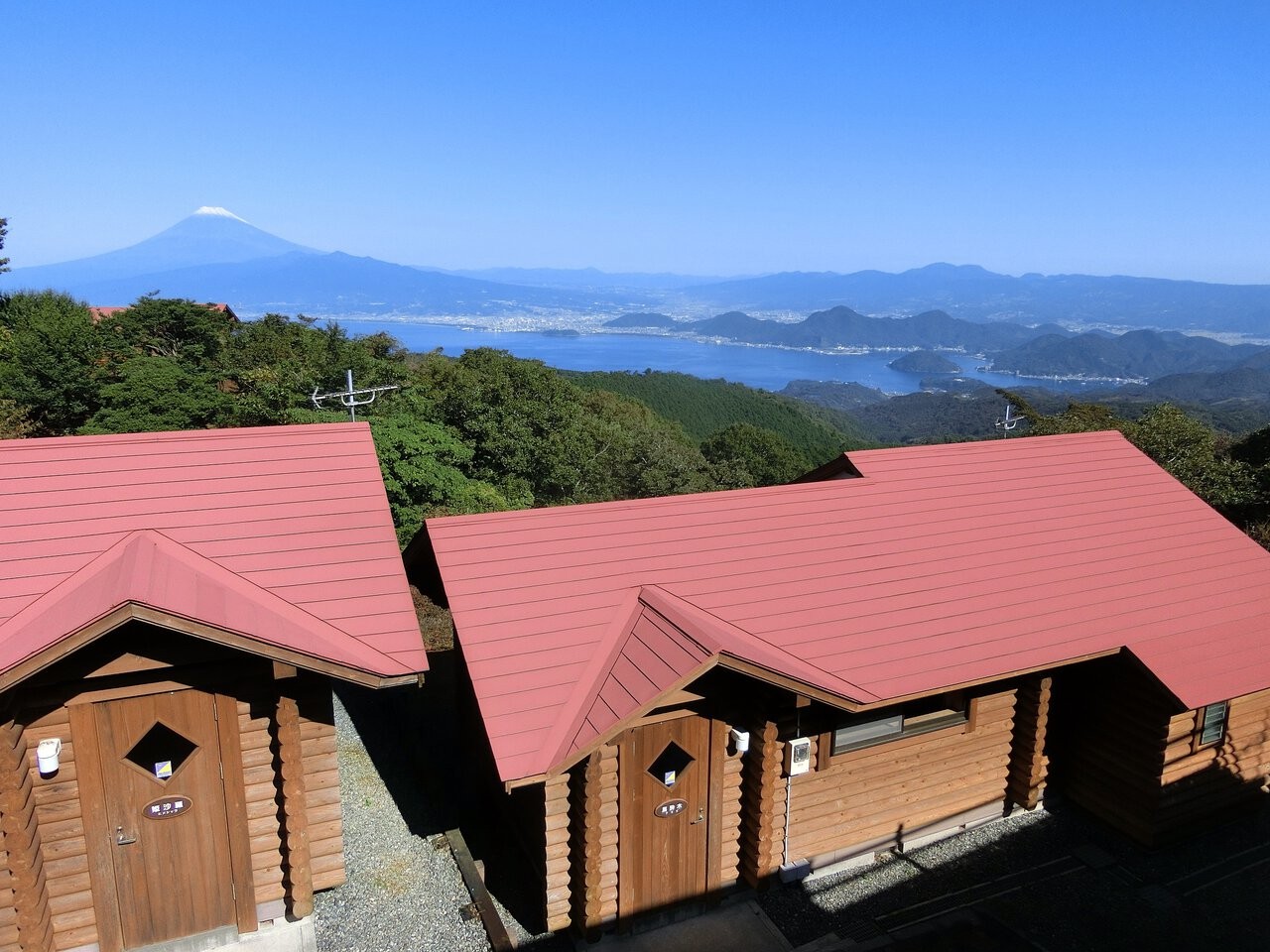 스루가 만과 후지산의 멋진 풍경 속에서 식사와 휴식을 즐길 수 있습니다.