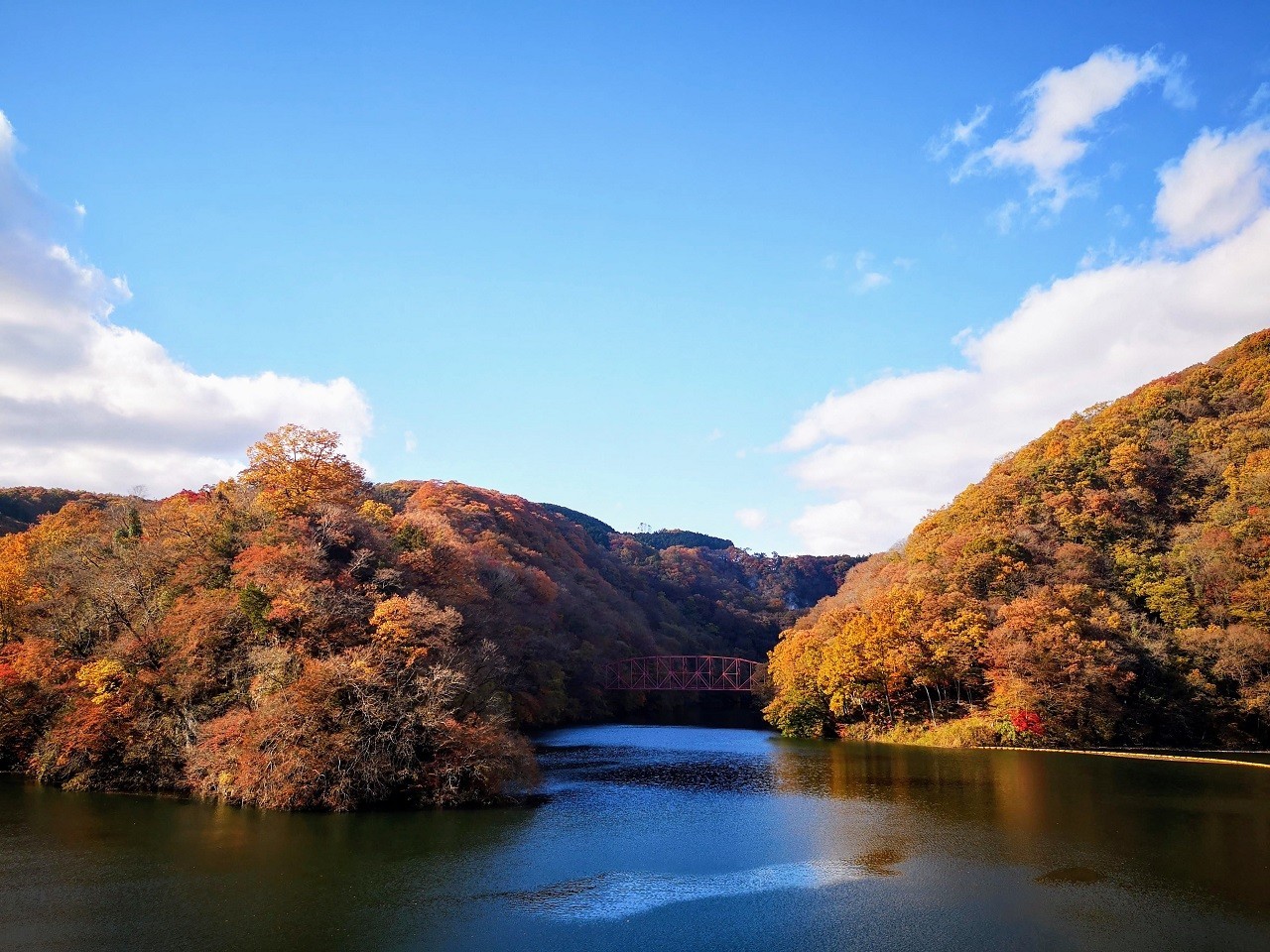 신류코 호수에 놓인 다리 길이 84m,너비 4.6m의 철제, 하로식 도로교.