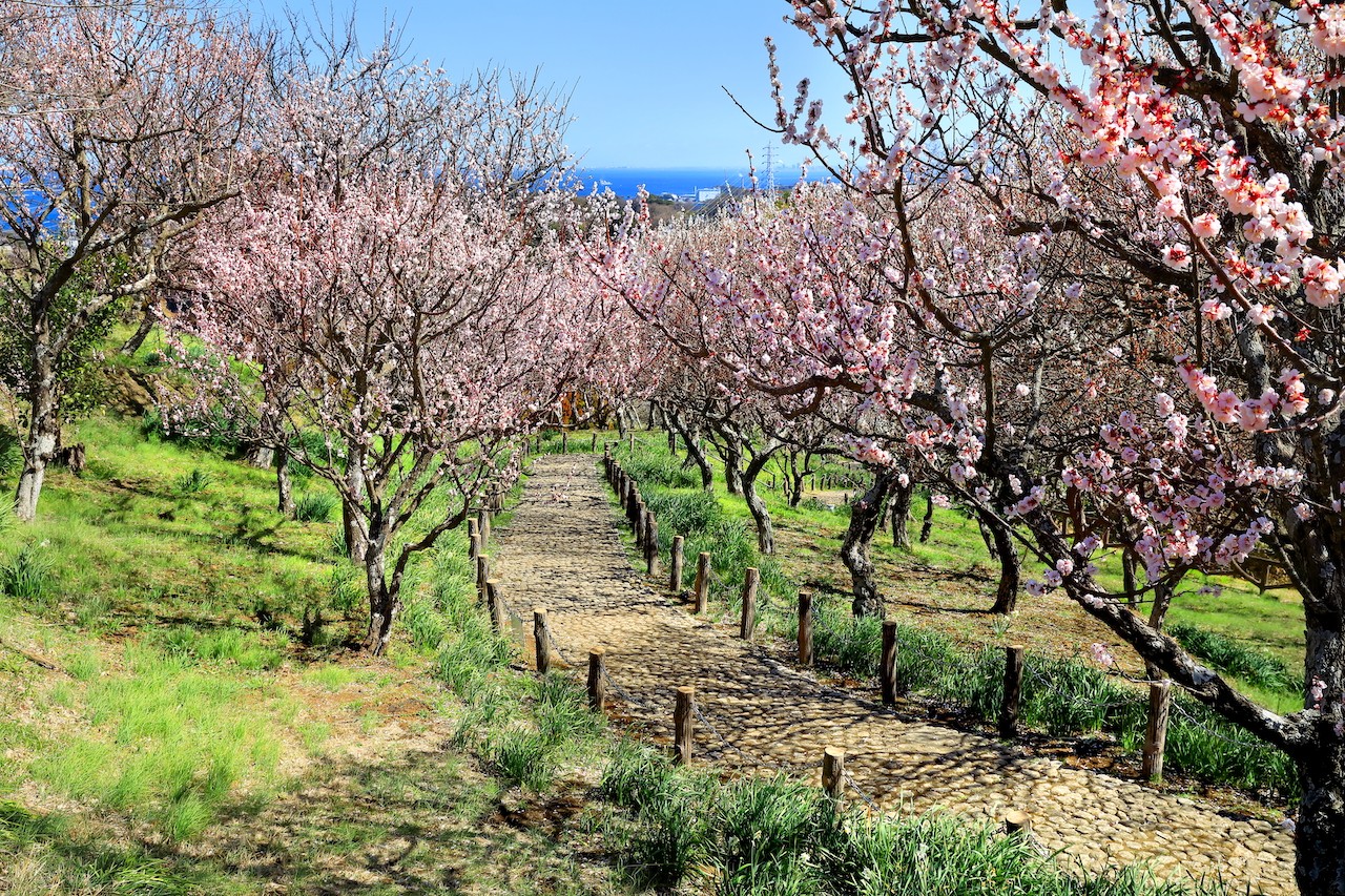 약 2천 그루가 넘는 매화나무가 흐드러지게 피는 매화나무 명소로, '가나가와 꽃 명소 100선'에도 선정되었습니다.
