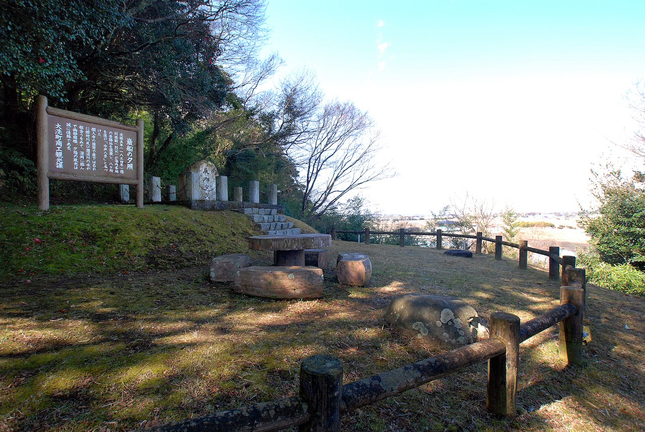 미토반 영주: 토쿠가와 나리아키(랫코)가 미토 팔경 중 하나로 선정한 경승지. 눈앞에 나카가와강과 히누마강이 합류하며 멀리에는 츠쿠바산을 바라볼 수 있다.
