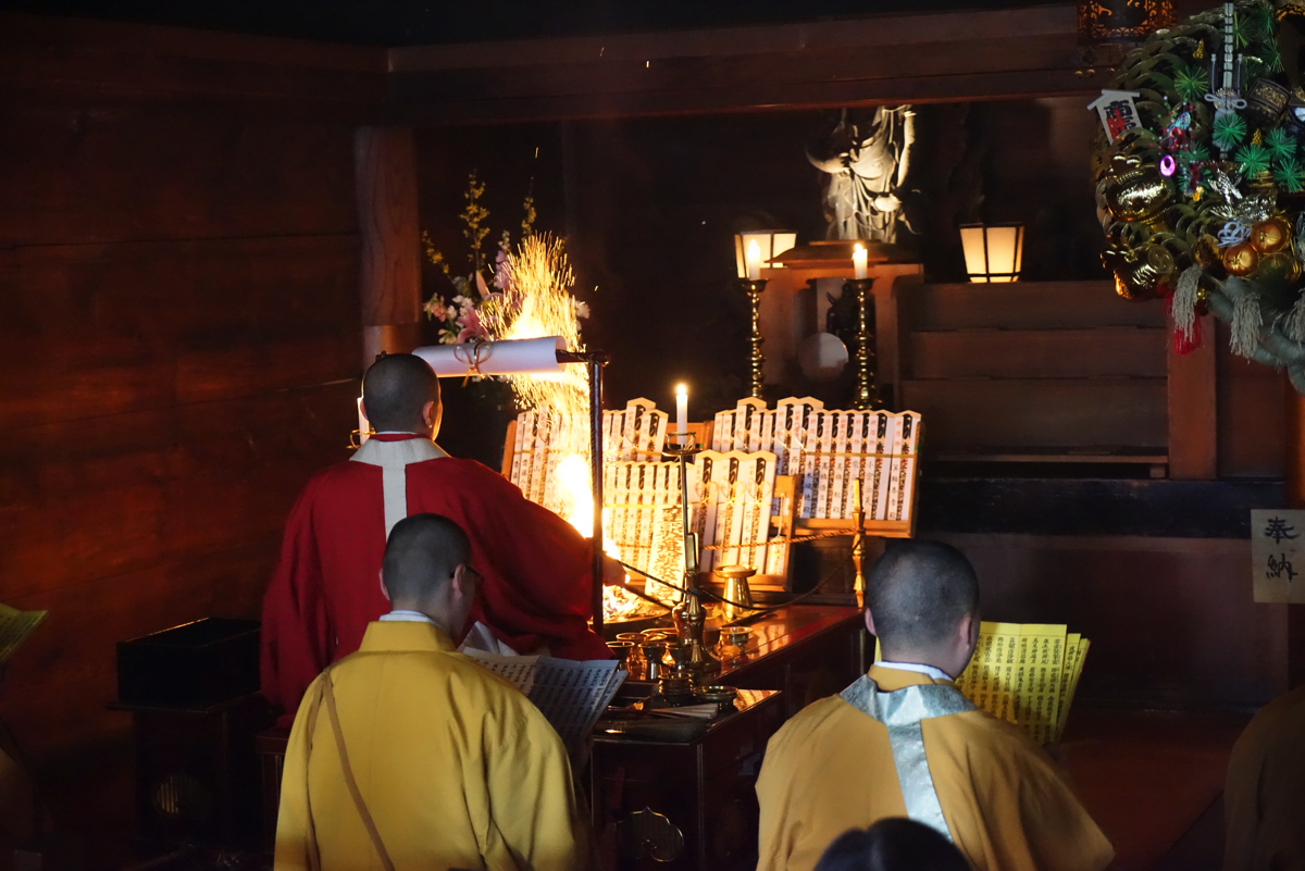 深大寺の元三大師堂では毎日僧侶たちによる護摩祈願が行われています。