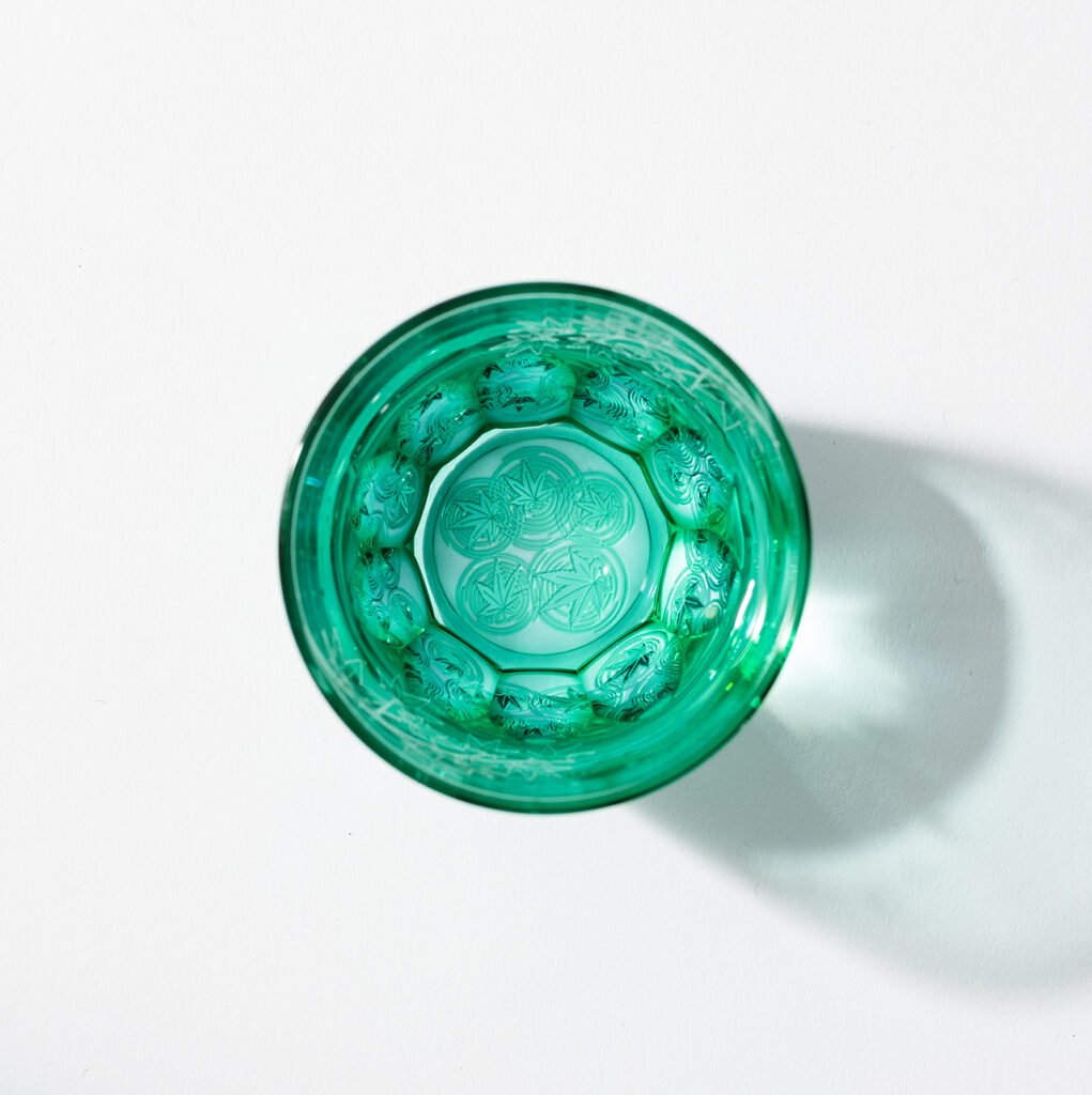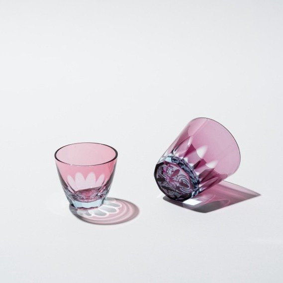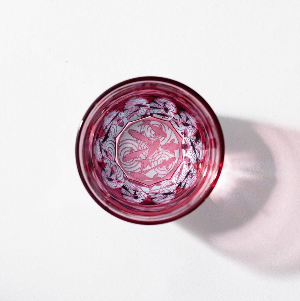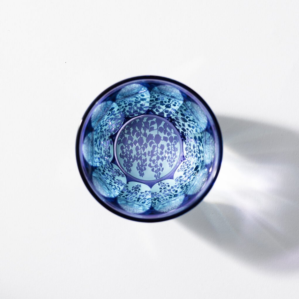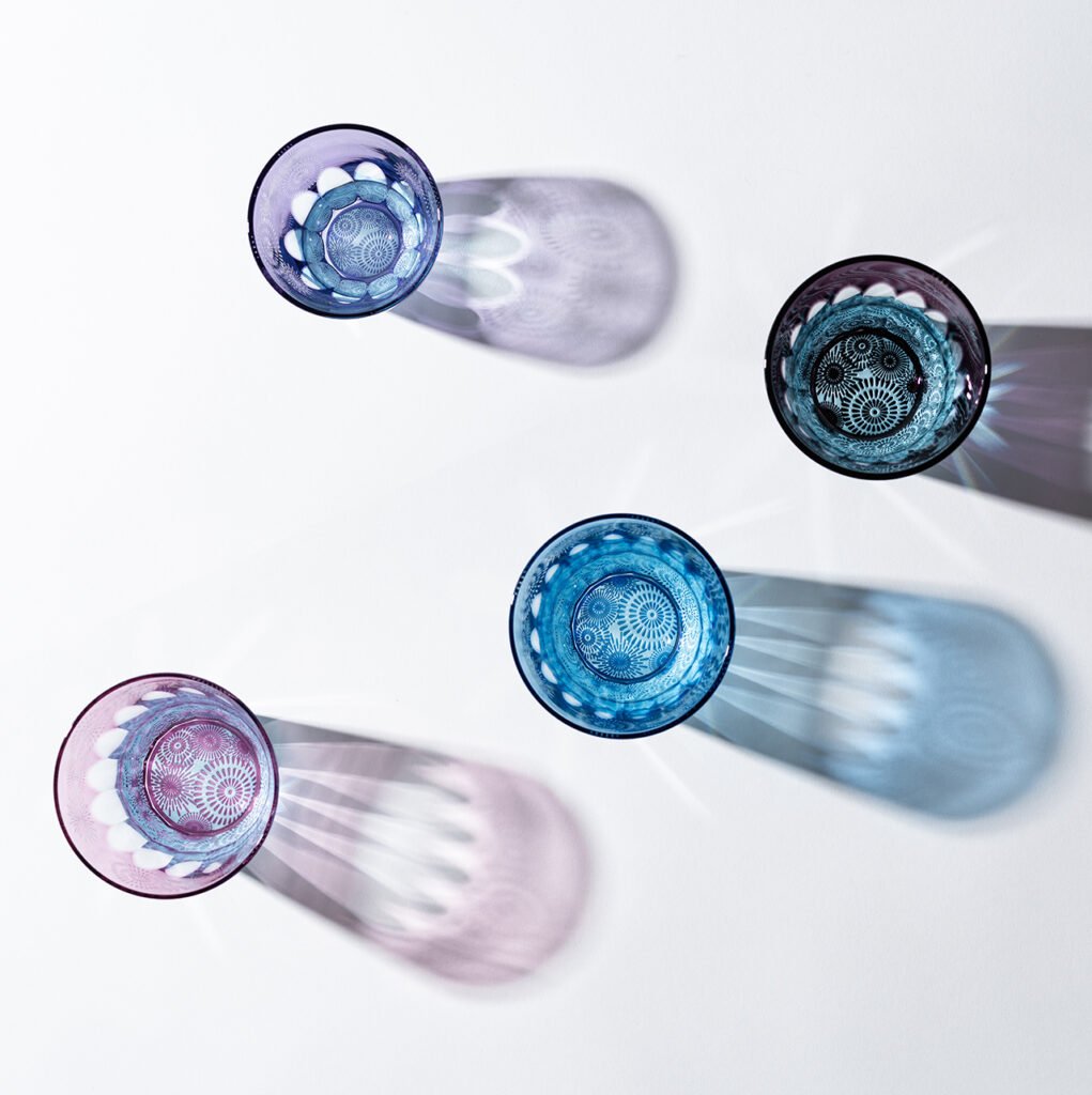 江戸切子の魅力は、光とガラスが織りなす繊細な文様にあります。麻の葉、矢来、菊など、身近な和の意匠がグラスの表面に彫り込まれ、それらが光を受けることで、映り込みや陰影が立体的に広がります。使用されるガラスには、透明な「透きガラス」や、色ガラスを重ねた「色被せ(いろきせ)ガラス」があり、それぞれに異なる表情を見せてくれます。