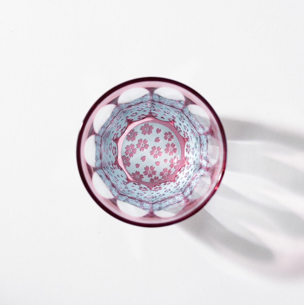 2025年に発表された新シリーズ「en」は、まさにその思想の結晶とも言える存在です。桜や藤、金魚、紅葉、花火──四季の風景にちなんだ模様がグラスに刻まれ、そこに飲み物を注ぐと、反射によって模様が側面へと広がります。一見して気づく変化ではないかもしれません。けれど、手に取ったとき、光を通したとき、使い続けるうちに、ふとその意味に気づく──そんな「時間とともに育つデザイン」がここにはあります。