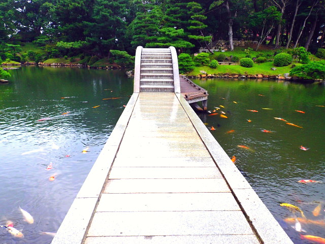 また池の中央にかかる太鼓橋「跨虹橋(ここうきょう)」は公園のメインシンボルとしての美しさだけでなくとても頑丈にできていて、原爆の爆風にも耐えたことで知られています。