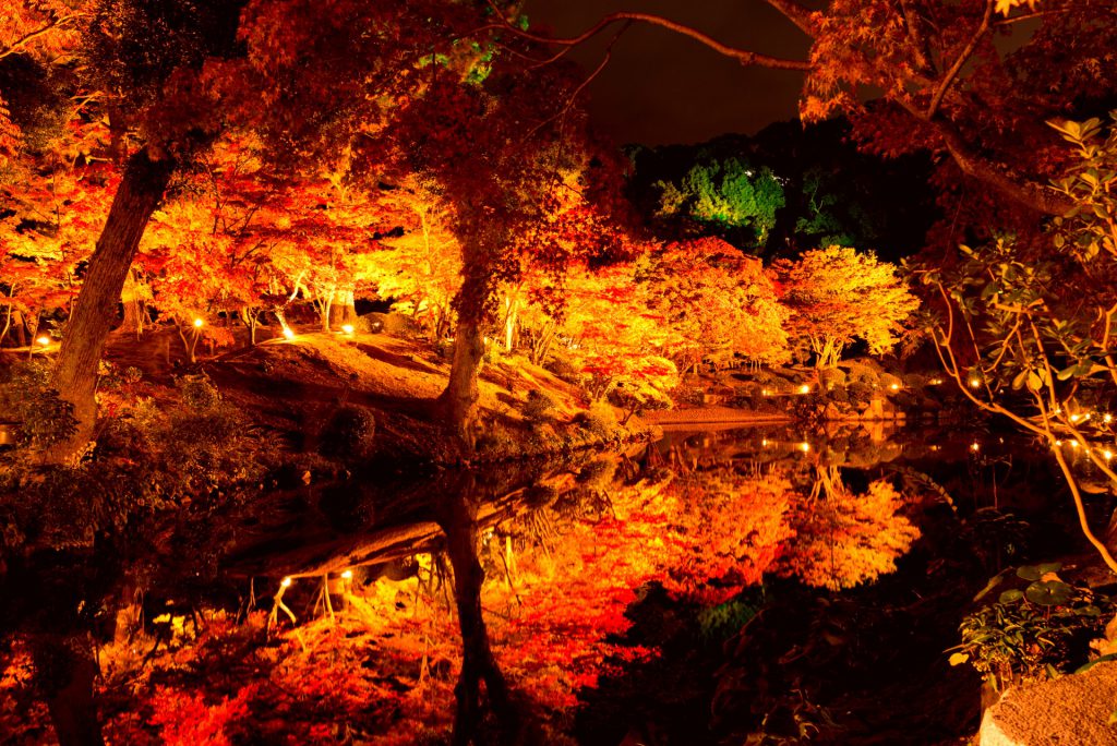 縮景園では1年を通して様々な催しを行っていますが、毎年11月下旬から12月の頭に行われる「もみじまつり」は園内の落葉樹が色づく季節を堪能できるイベントです。