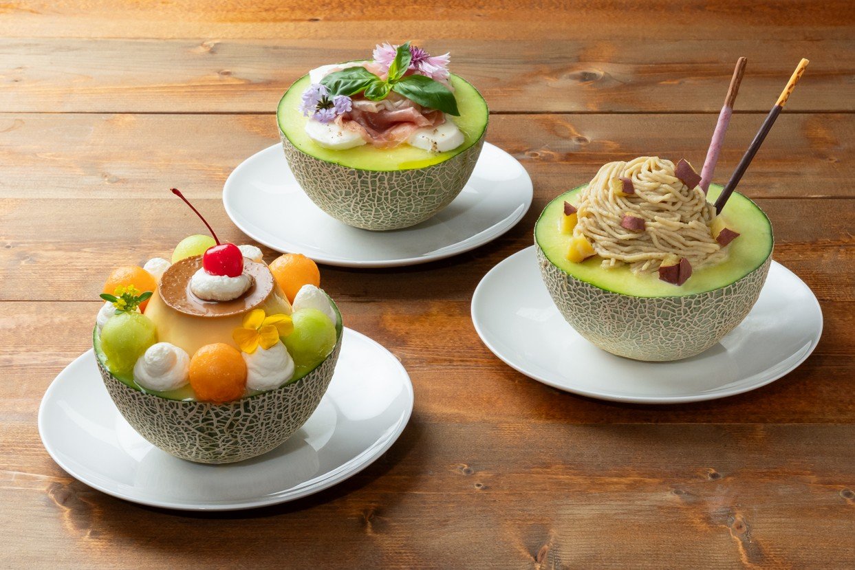 笠間市産の濃厚モンブラン、茨城県産さつまいものカット焼き芋、風味豊かな茨城県産のほしいも、取手市シモタファームのフレッシュなミント、高萩市柴田農園のエディブルフラワーといった、茨城が誇るこだわりの地元食材から、プリン、チェリー、ホイップクリーム、生ハム、モッツァレラチーズ、アイスクリーム、マーブルチョコ、チョコレートスティックなど、約15種類もの多彩なトッピングが並びます。一つひとつの素材に込められた生産者の想いを感じながら、あなただけの“夢のメロンボウル”を完成させてください。