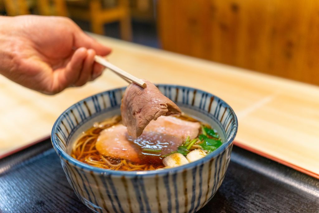 大師茶屋の「つゆ」は新鮮なカツオ出汁をベースにした風味が効いた少し甘めでバランスのよいつゆです。