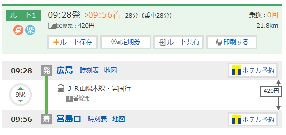 まずは広島市内から宮島口(フェリー乗り場)へ向かいます。