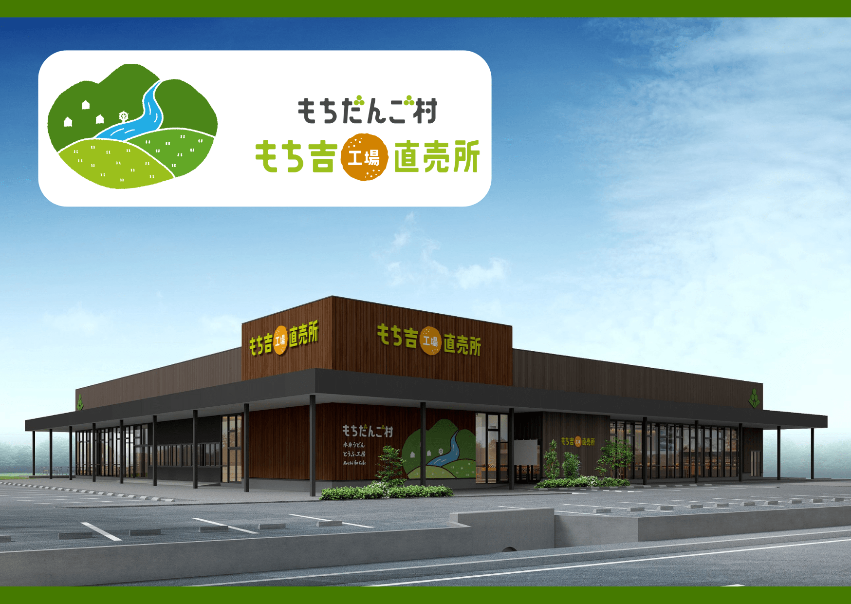 38年にわたり地域に親しまれてきた「もち吉 直方本店」は2026年1月に閉店しましたが、新施設はその役割を引き継ぐ形で、同エリアの中心に開業。販売・飲食エリアは旧本店の約10倍の広さにスケールアップします。