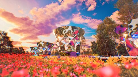 null²が都市空間のインスタレーションだったのに対し、null⁴は自然の中に設置される「風景変換彫刻」として位置づけられます。4棟の構造体が回転する鏡面で花・空・風・来場者の影を取り込み、周囲の風景そのものを変換するインタラクティブな作品となり、プロジェクト側はこれを「移設ではなく、転生」と説明しています。