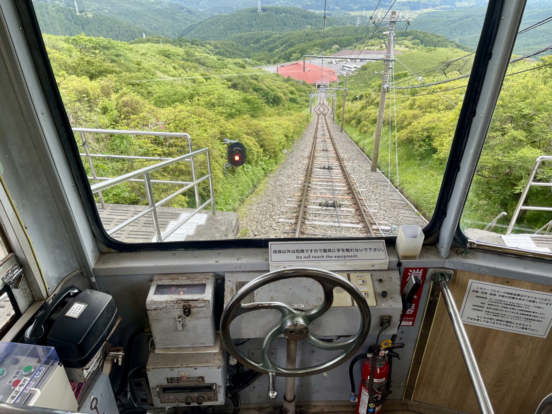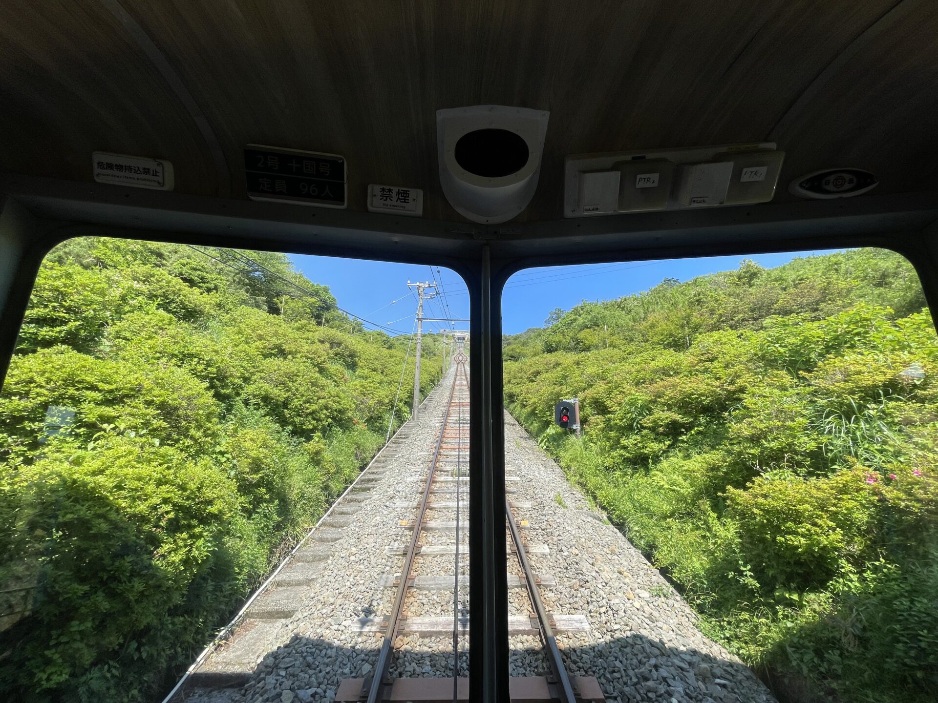 - レトロなケーブルカー: ガラス張りの車内から楽しむ絶景の旅。