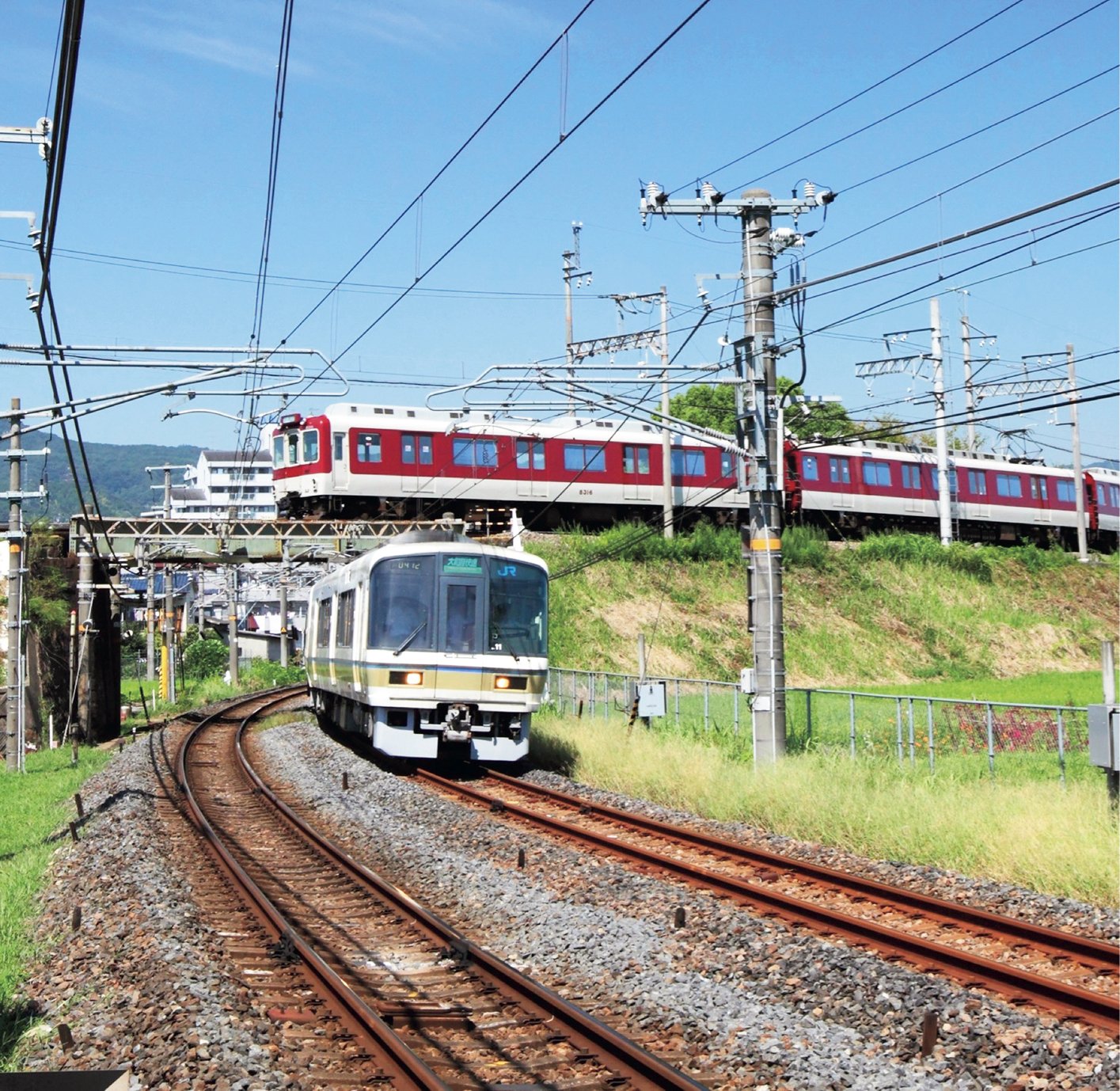 普段は乗客を乗せて入線できない田原本町駅から橿原線への渡り線に入り、西大寺方面へ電車が進みます。