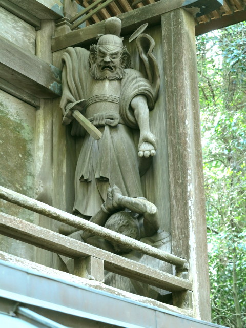 荒ぶる神である「鬼八(きはち)」を退治したという伝説をもとにつくられていて、険しく厳しい表情は躍動感があり必見です。