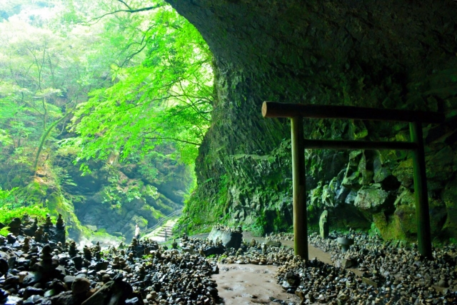 そして西本宮から岩戸川に沿って、徒歩10~15分ほどに位置する天安河原は神話の中で、神々が集まりアマテラスに出てきてもらう策を練った場所と言われています。